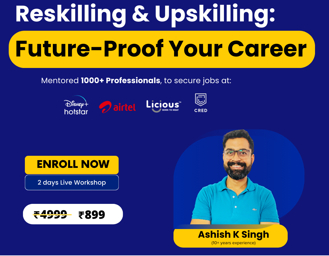 Are you ready to future-proof your career in today's dynamic job market? Our comprehensive Reskilling and Upskilling workshop is tailored to equip you with the essential tools and expertise required to thrive in the rapidly evolving professional landscape. Led by Ashish K. Singh, this course empowers you with the latest knowledge and strategies necessary to adapt, grow, and excel in your career.